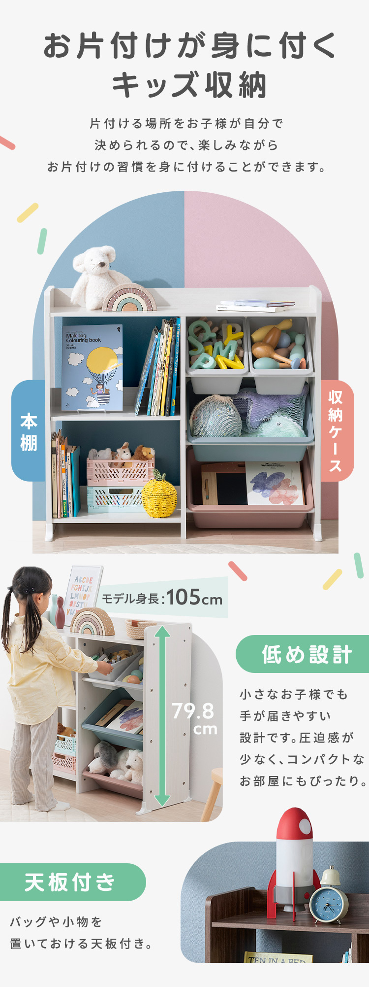 (検索用:おもちゃ収納 子供 おもちゃ 収納 棚 ラック かご ランドセルラック おもちゃ箱 絵本棚 オープンラック 絵本ラック おしゃれ 角丸デザイン 安心設計 おもちゃ収納ラック 子ども 入園 入学 本棚付き トイハウスラック 4967576799225 4967576799232)