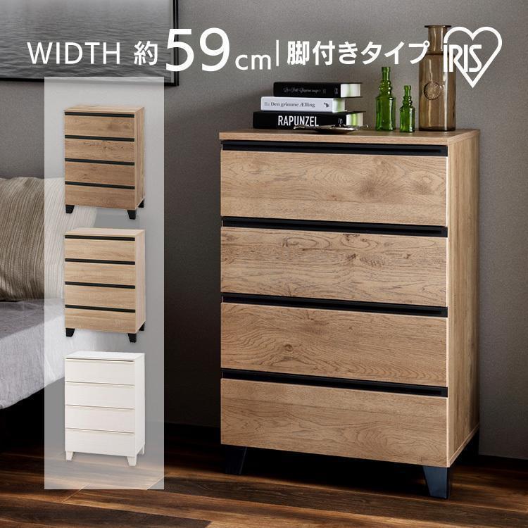 チェスト 木製 4段 幅59 脚付き タンス 収納 木目調 白 引き出し おしゃれ 北欧 収納棚 衣類収納 ウッドチェスト WCHL-590 アイリスオーヤマ