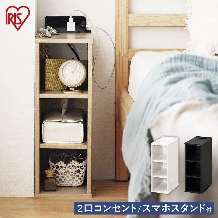 サイドテーブル おしゃれ 北欧 コンセント付き 収納 棚 スマホスタンド付き ナイトテーブル棚付き NTB-180R アイリスオーヤマ