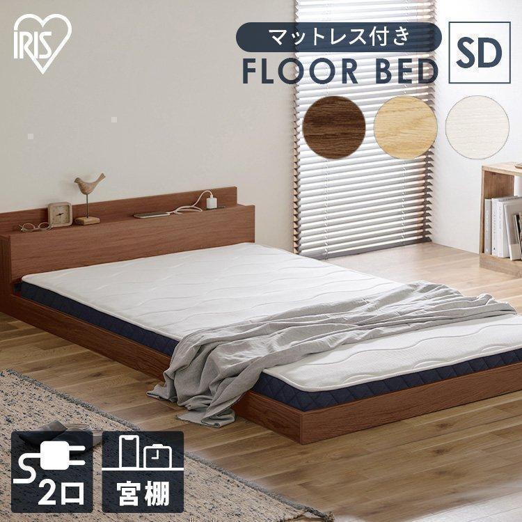 ベッド セミダブル マットレス付きベッド 寝具 マットレス ナチュラル ブラウン ホワイト マットレス付きフロアベッドSD SBM-SD アイリスオーヤマ 父の日