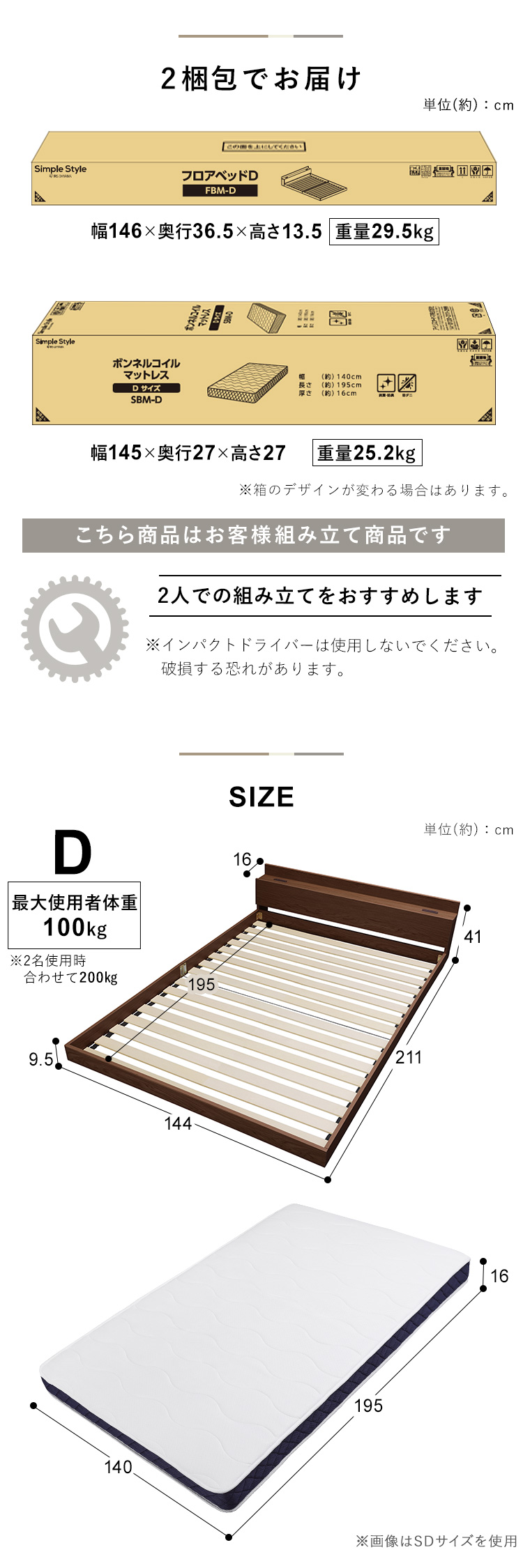 ベッド シングル マットレス付きベッド 寝具 マットレス ナチュラル ブラウン ホワイト マットレス付きフロアベッドD SBM-D アイリスオーヤマ 父の日