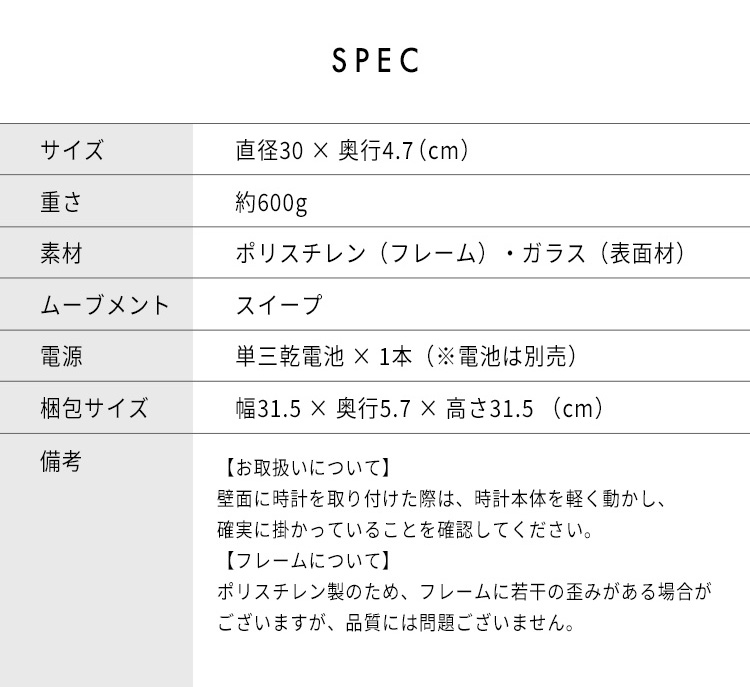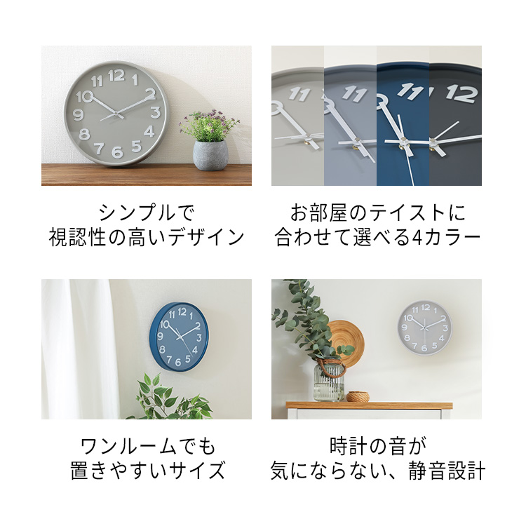 壁掛け時計 おしゃれ 北欧 電池式 静音 シンプル 掛け時計 ペールカラー インテリア スピカ2 直径30cm