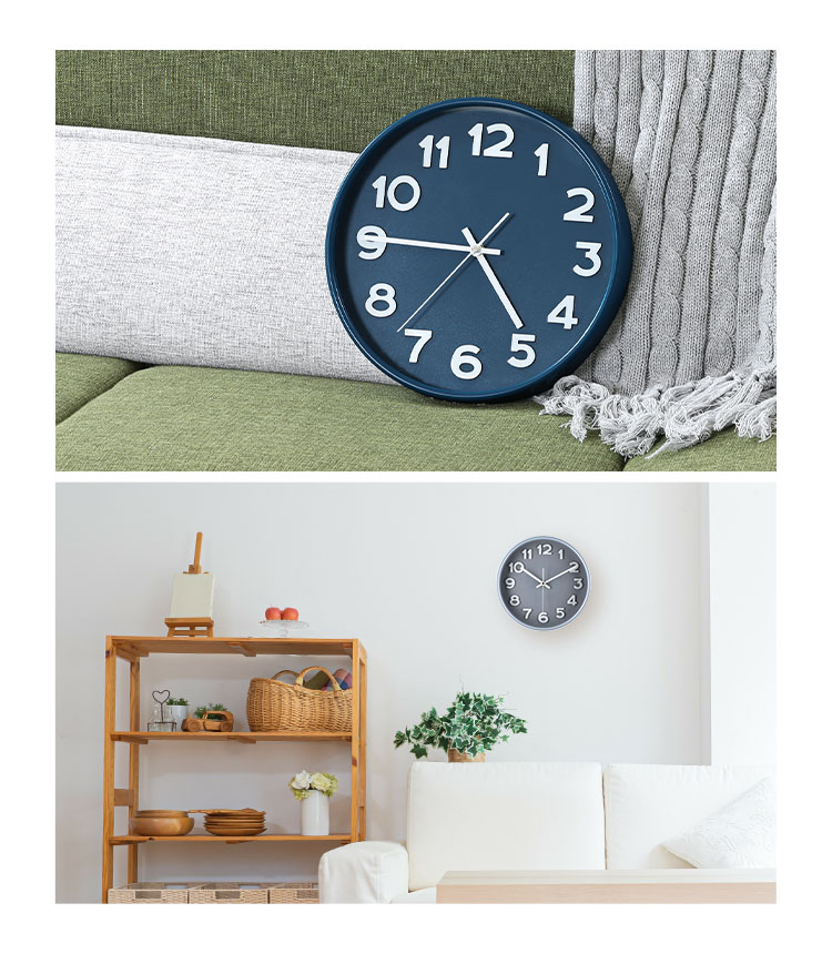 淡いペールカラーが可愛いスイープ式掛け時計。