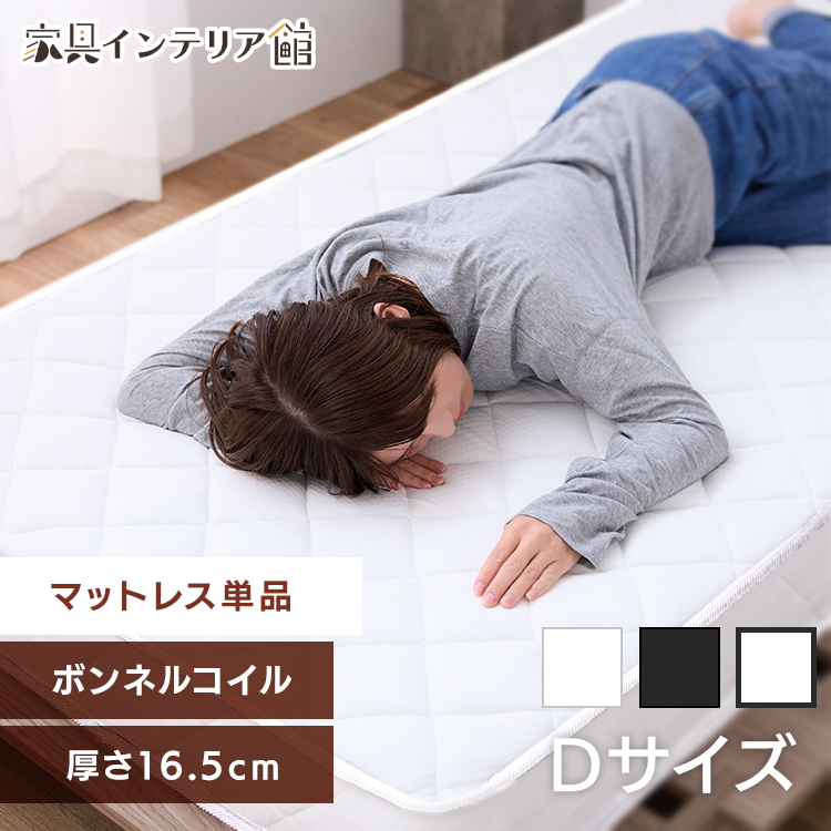 (検索用:マットレス ダブル ボンネルコイル ボンネルコイルマットレス 16.5cm ブラック ホワイト 黒 白 )