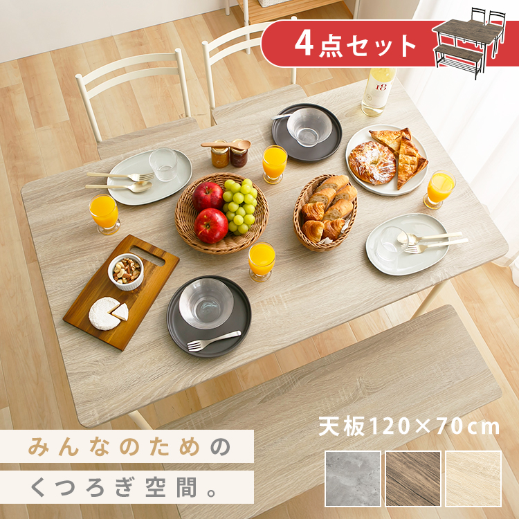 3〜4人家族にぴったりサイズの、ベンチタイプのダイニング4点セットです。