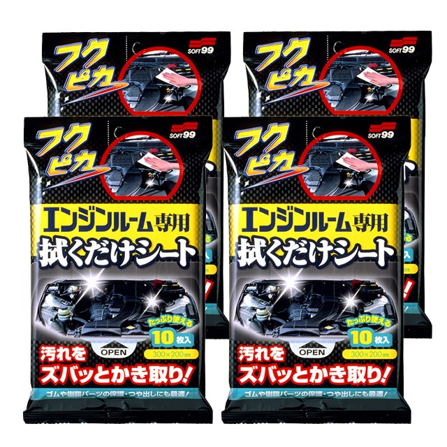 【ゆうパケット】ソフト99 フクピカエンジンルーム専用拭くだけシート 4個セット ※代引き不可、同梱不可