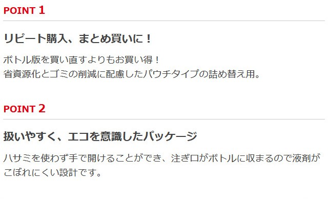 コストバリューに優れた詰め替え用 省資源とゴミの削減を考慮したパッケージ 爆買