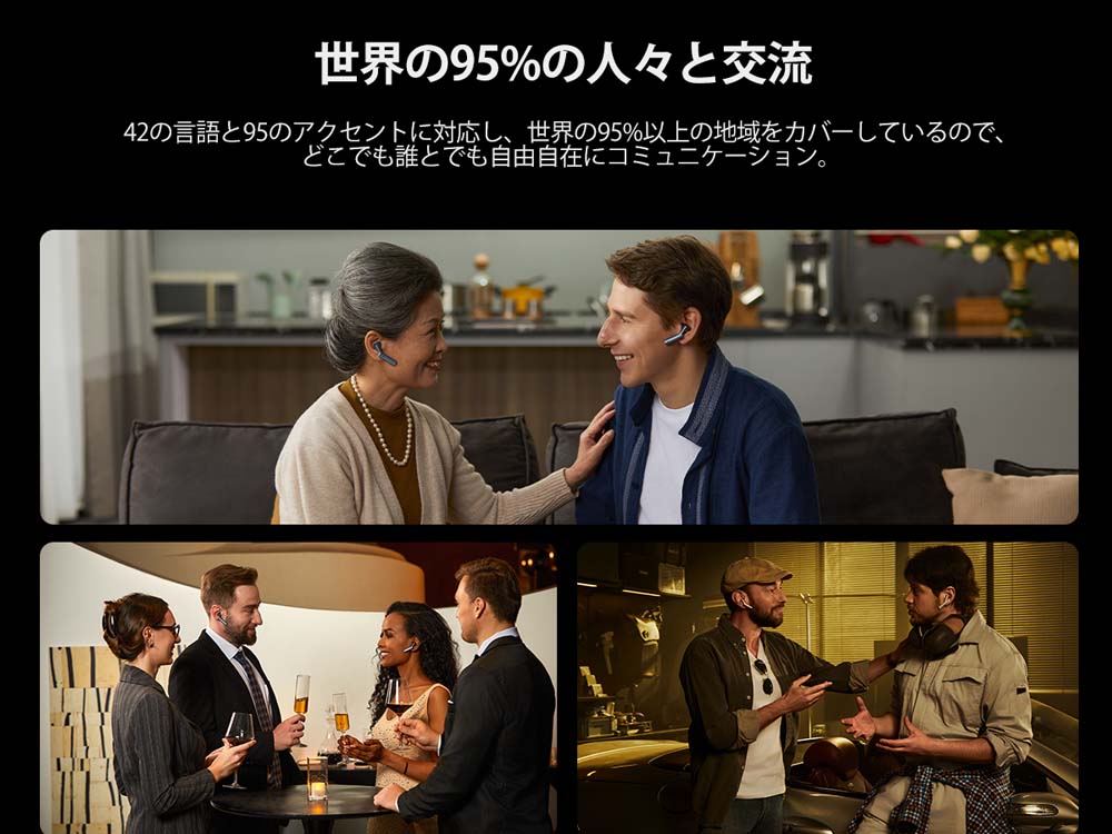 複数言語間でもリアルタイムで音声によるスムーズなコミュニケーションが可能。高いバッテリー性能と接続の安定性で、アクセントがある会話でもストレスフリー。