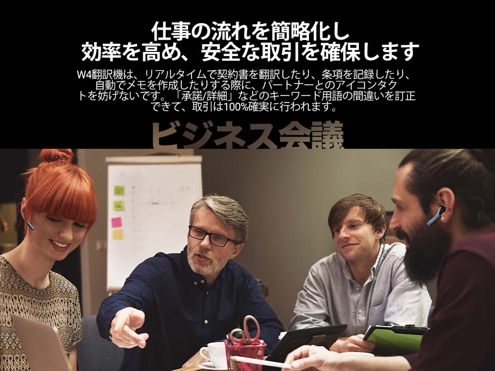 W4 Pro AI通訳イヤホンは、ただのデバイスではなく、現場やオンラインでのコミュニケーションをサポートし、議事録を作成できるあなたのグローバルビジネスアシスタントである。W4 Proイヤホンは、効率的なビジネスコミュニケーションを支援し、シームレスなグローバルビジネス交流の新時代を切り開く。
