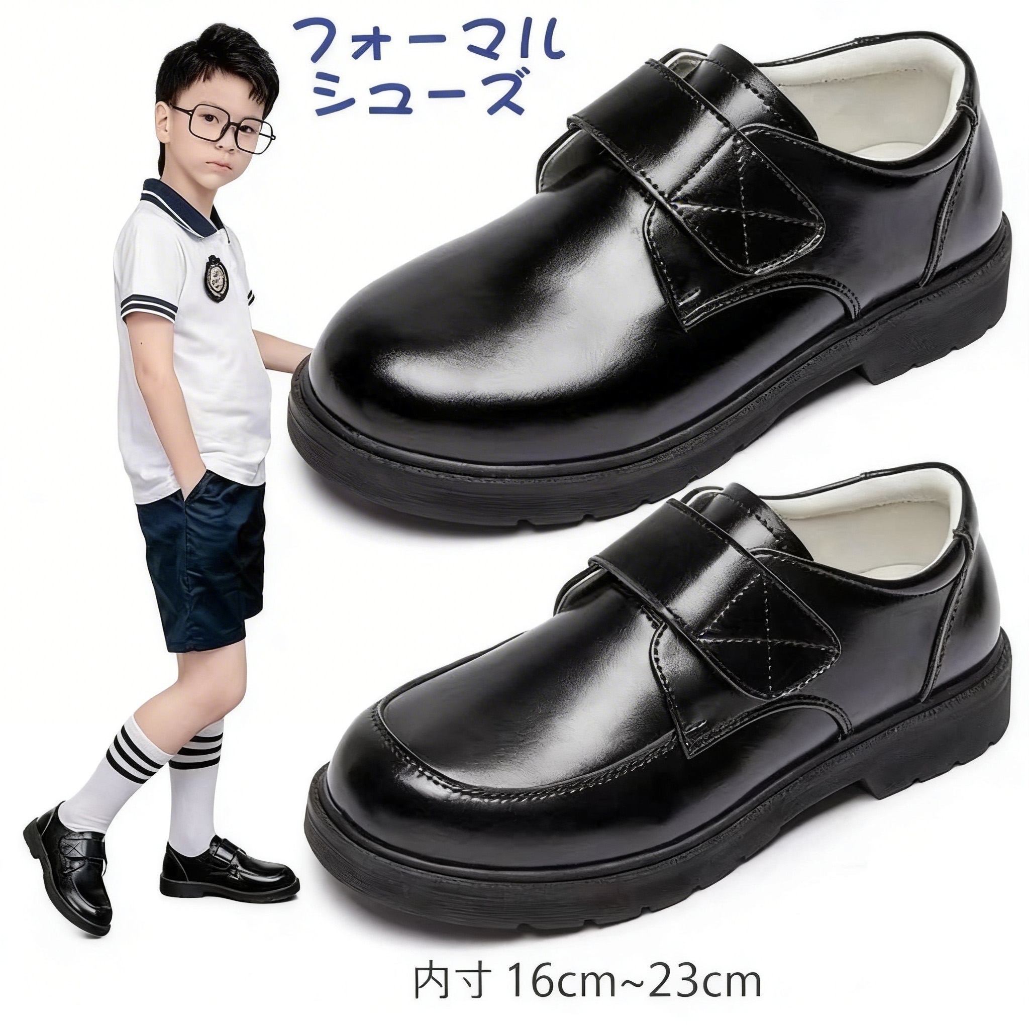 [商品概要] 入学式やピアノ発表会などの晴れの日にぴったりな、男の子用レザー調フォーマルローファーです。