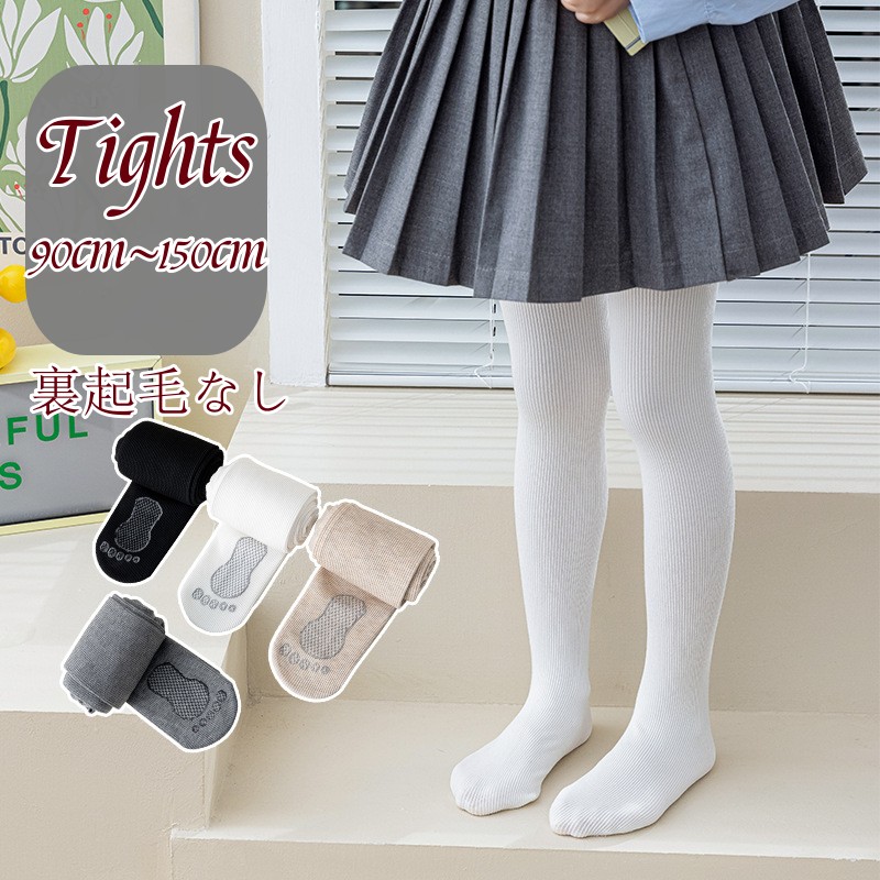 タイツ 女の子用 リブ編み ホワイト・ブラック・ベージュ・グレー 90〜150cm 春秋 フォーマル・発表会・通園通学