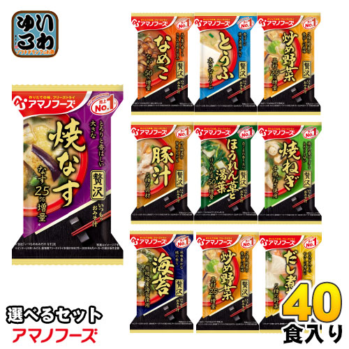 アマノフーズ フリーズドライ いつものおみそ汁 贅沢シリーズ から4種類(10食入を4セットで合計40食) お選びいただけます。