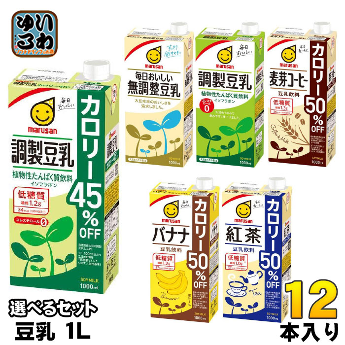 マルサンアイ 豆乳 1L 紙パック 選べる 12本 (6本×2) 豆乳飲料 1000ml 無調整 調製豆乳 カロリーオフ 麦芽コーヒー バナナ 紅茶 50%オフ マルサン 豆乳