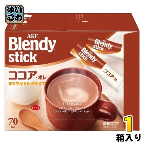 お湯だけでクリーミー。ココアとミルクがまろやかに溶け合った、風味豊かなミルクココアです。1箱でたっぷり楽しめる70本入りの大容量サイズ。