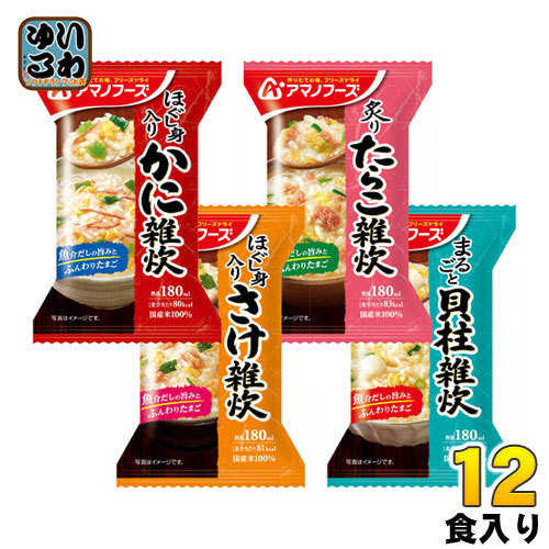 「かに」「さけ」「たらこ」「貝柱」の海鮮雑炊の4種類アソートセットです。