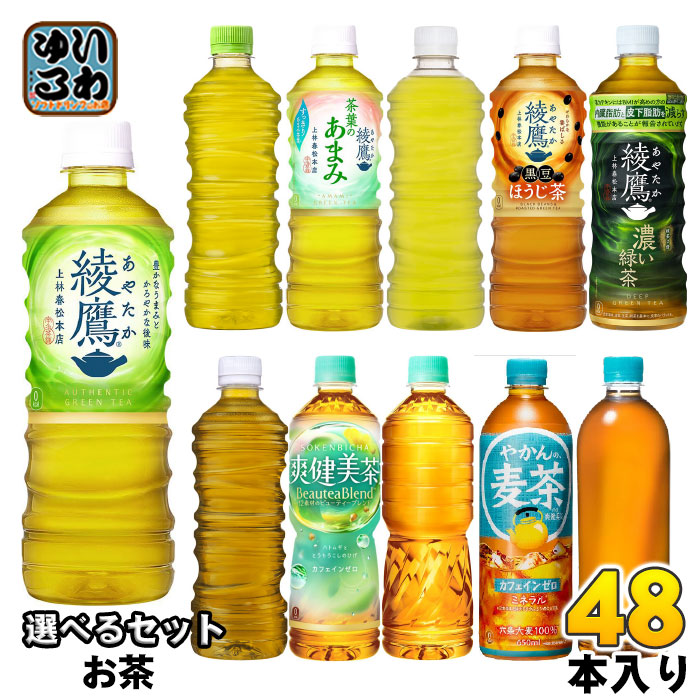 コカコーラ製品 綾鷹 爽健美茶 やかんの麦茶 525ml 600ml 650ml ペットボトルシリーズより、2種類 (1ケース24本入を2セットで合計48本) お選びいただけます。