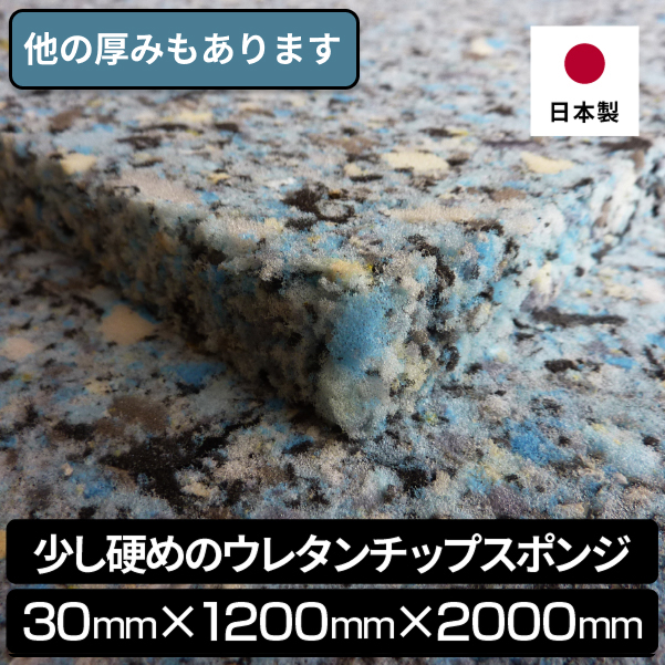 少し硬めのウレタンチップスポンジ 30mmx1200x2000 1枚入 ウレタン チップ ウレタンフォーム 硬め チップクッション 家具 厚さ 30mm 厚さ3cm