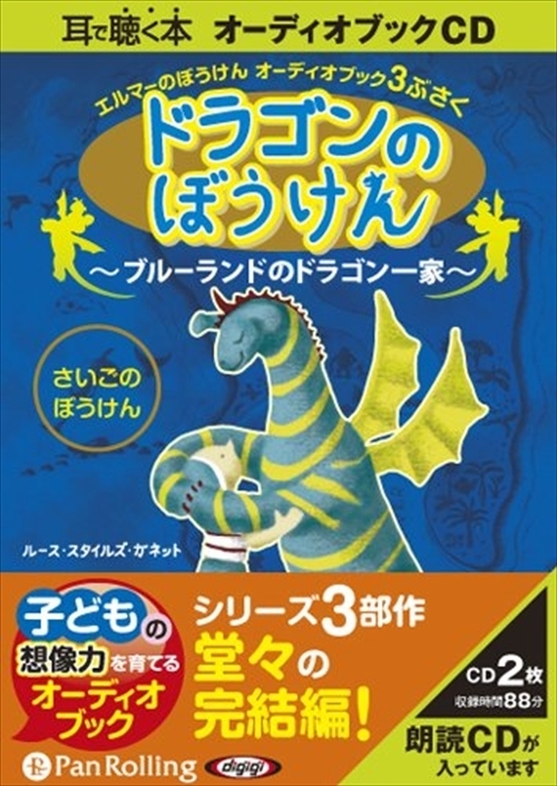 | ハネハネ島でカナリアのたからものを見つけ出したエルマーとドラゴン。 やっとエルマーをおうちに送ったドラゴンは、今度はじぶんのおうちを目指します。 でもひとに見つからないように空を飛ぶのは大変。トゲトゲさんみゃく、 ゾクゾクさばくをなんとか越えて、ついに家族のいるブルーランドへたどり着きました。 ところが、そこにはパパやママの姿が見えません。 なんとドラゴンの家族はみんな、わるいひとたちにつかまってしまったのです! 困ったドラゴンは、エルマーのところに戻って相談します。 そうしてエルマーが考えた作戦をきいて、ドラゴンはおもわず飛び上がりました! 今度の旅はきけんがいっぱい!はたしてドラゴンの家族の運命は!? 家族、ともだちとの絆をえがく、さいごのぼうけんがいまはじまります。 物語の世界をそのまま閉じ込めた、子どもに聞かせたいオーディオブック。 (ルース・スタイルズ・ガネット(Ruth Stiles Gannett)) 児童文学作家。1923年にニューヨークに生まれる。1944年にバッサー・カレッジを卒業。 化学専攻の研究者であったが、後に児童文学に興味を持ち、児童図書協議会の職員になる。 1948年に「エルマーのぼうけん」を発表し、その後に発表した「エルマーとりゅう」(1950) 「エルマーと16ぴきのりゅう」(1951)と共に、世界で高い評価を得ることとなり、 世界的なロングセラーとなっている。 (翻訳者:大久保ゆう(おおくぼ・ゆう)) 1982年生まれ。高校1年時より翻訳を始め、以来、各種翻訳を クリエイティブコモンズライセンスにて広く提供しつづけ、 個人・企業などで様々に 活用されている。現在は研究者として 翻訳研究に携わるとともに、フリーランスの翻訳家・執筆家としても活動中。 ※ Copyright (C)1951 by Random House, Inc. Copyright renewed 1979 by Ruth Stiles Gannett and Ruth Chrisman Gannett. Recorded by arrangement with Random House Children's Books, a division of Random House, Inc. through Japan UNI Agency, Inc. ※ 本商品は「Dragons of Blueland; Written by Ruth Stiles Gannett; Published by Random House, Inc.」 を新訳し音声化したものです。 <仕様> 2枚組オーディオブックCD ■品番:9784775924358 ■JAN:9784775924358 ■発売日:2011.06.01 出版社 : でじじ発行/パンローリング発売 言語 : 日本語 |