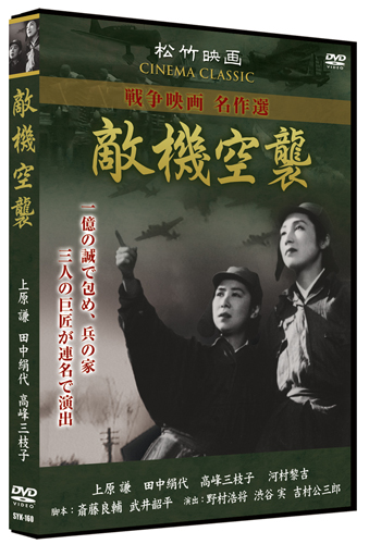 | 野村浩将、渋谷実、吉村公三郎、当時の松竹映画を代表する3人の巨匠が連名で演出を担当した戦意昂揚映画。 <解説> 戦争末期、庶民は空襲に対して万全の備えをしていた。そんなある日、空襲警報がなった。町民皆は、すかさずいつもの演習どおりに避難した。しかし今回の敵機空襲は、戦機五機と少なく、民家のある手前で、全機撃墜され、難を逃れた。町民は、また普段の生活へ戻った。そこに、ふたたび地響きとともに多数の敵機がやって来た。その数の多さに航空隊は全機出動して、半数撃墜したが、東の空から第二敵機隊が接近してきた。地上からも攻撃を仕掛け、何とか民家のある町に近づかないように努力したが、敵機の数が非常に多く、とうとう民家が攻撃を受け始めた。町民はそれぞれ避難したが建物は次々と崩壊し、町は、焼け野原となってしまった。 <キャスト&スタッフ> 演出 : 野村浩将、渋谷実、吉村公三郎 脚本 : 斎藤良輔、武井韶平 <規格・時間> 89分/モノクロ/片面1層/サイズ:4:3/音声:1.日本語 ドルビーデジタル2ch/リージョン2日本市場向け/製作国年:2013年日本 ■発売日:2013/07/02 品番:SYK-160 JAN:4984705804438 販売元:株式会社ケイメディア