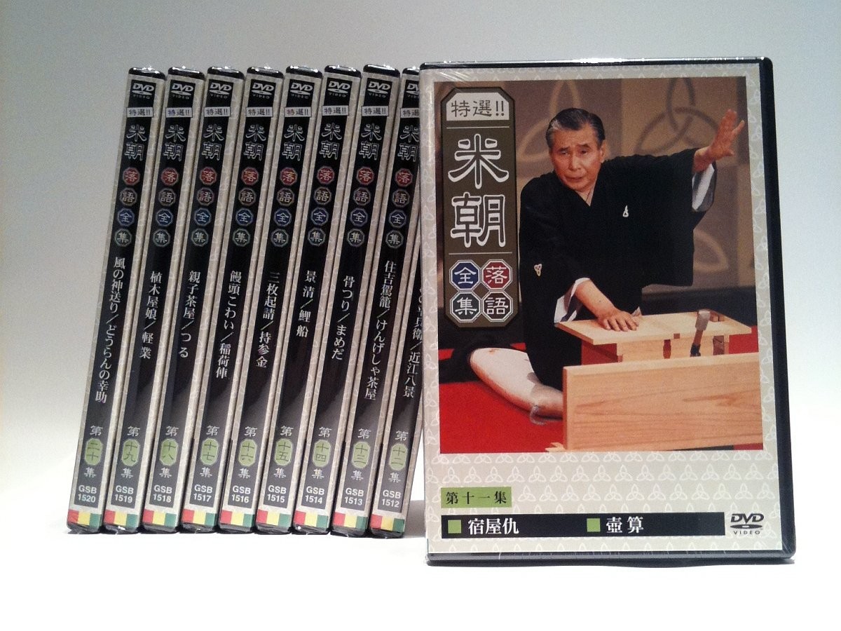 | 円熟の極致。上方話芸の至宝を集大成。堂々の完結! ! 必携保存盤! ! 崩壊寸前だった上方落語を見事なまでに復活させ、76才になった今も、およそ100日の舞台をつとめる人間国宝・桂米朝の特選20話を収録。 特製手ぬぐい付。(※手ぬぐいの色は各期によって変わります。) <仕様> 10DVD ■品番:TPD-6095 ■JAN:0 ■発売日:2002.10.717 ◎DVD10枚組 ◎カラー ステレオ ◎「桂 米朝オリジナル手拭い(非売品)」付き! ※このディスクは、プレーヤーにセットすると自動的にメニュー画面が表示されます。 演目の解説文も画面より選択してお楽しみいただけます。 <収録内容> 第十一集 ・宿屋仇(37:21)平成2年6月22日/大阪コスモ証券ホールにて収録 ・壺算(29:27)平成2年8月21日/大阪コスモ証券ホールにて収録 第十二集 ・算段の平兵衛(32:17)平成2年3月20日/大阪コスモ証券ホールにて収録 ・近江八景(22:09)平成2年2月20日/大阪コスモ証券ホールにて収録 第十三集 ・住吉駕籠(35:39)平成2年4月20日/大阪コスモ証券ホールにて収録 ・けんげしゃ茶屋(32:20)平成2年11月22日/大阪コスモ証券ホールにて収録 第十四集 ・骨つり(25:05)平成2年5月15大阪コスモ証券ホールにて収録 ・まめだ(18:21)平成2年8月21日大阪コスモ証券ホールにて収録 第十五集 ・景清(かげきよ)(32:11)平成2年4月22日京都府立文化芸術会館にて収録 ・鯉船(こいふね)(15:08)平成2年4月20日大阪コスモ証券ホールにて収録 第十六集 ・三枚起請(34:22)平成2年10月23日大阪コスモ証券ホールにて収録 ・持参金(23:21)平成2年10月23日大阪コスモ証券ホールにて収録 第十七集 ・饅頭こわい(29:37)平成2年12月18日大阪コスモ証券ホールにて収録 ・稲荷俥(いなりぐるま)(19:14)平成2年12月18日大阪コスモ証券ホールにて収録 第十八集 ・親子茶屋(25:08)平成3年3月12日大阪コスモ証券ホールにて収録 ・つる(16:00)平成3年2月19日大阪コスモ証券ホールにて収録 第十九集 ・植木屋娘(23:13)平成2年3月19日大阪コスモ証券ホールにて収録 ・軽業(18:52)平成3年3月12日大阪コスモ証券ホールにて収録 第二十集 ・風の神送り(30:17)平成2年9月18日大阪コスモ証券ホールにて収録 ・どうらんの幸助(32:38)平成3年8月19日大阪コスモ証券ホールにて収録