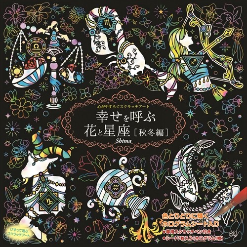 【おまけCL付】新品 心がやすらぐスクラッチアート 幸せを呼ぶ花と星座 秋冬編 4959321009567-CM
