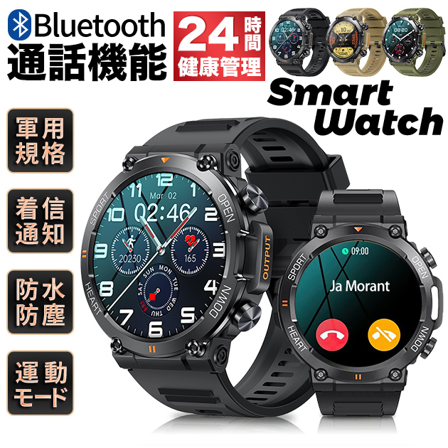 スマートウォッチ 軍用規格 丸型 軍用 スマート ウォッチ 血圧測定 体温 ヘルスウォッチ 通話機能 メンズ 24h 健康管理スマートウォッチ
