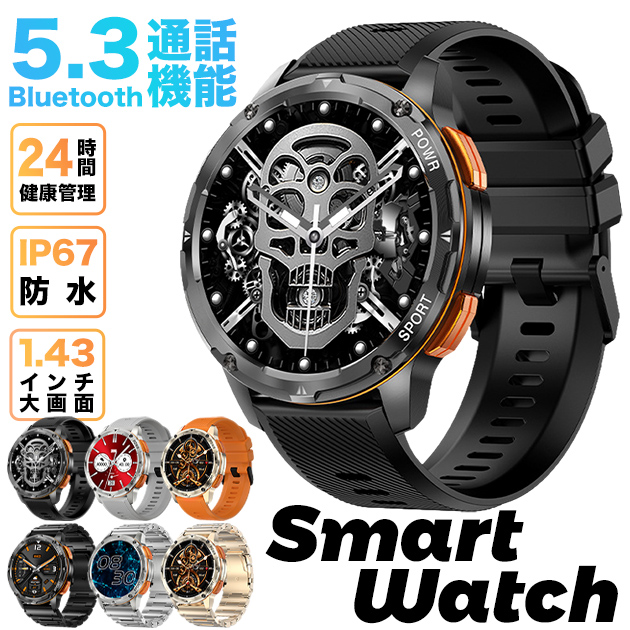 スマートウォッチ 軍用規格 丸型 軍用 スマート ウォッチ 体温測定 血圧 スポーツウォッチ 通話機能 メンズ iPhone対応 着信&line通知