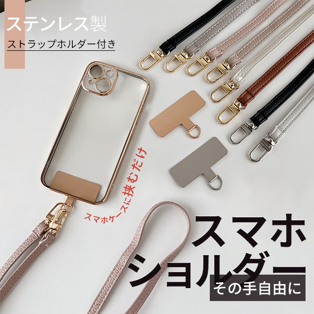 携帯ストラップ 肩掛け 斜め 首かけ スマホショルダーストラップ 太め 紐 革 スマホショルダー ネック 携帯ストラップホルダー ステンレス
