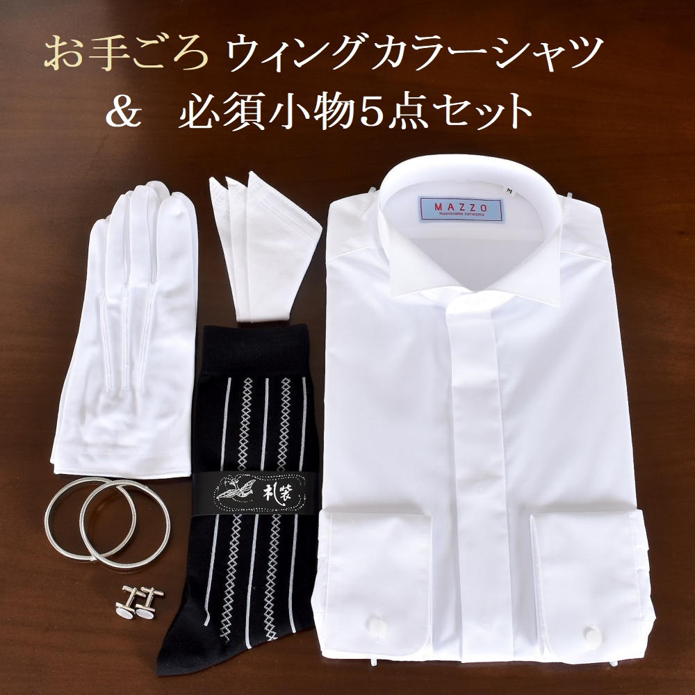 送料無料 ウィングカラーシャツと必須小物5点セット/お手ごろ価格/3営業日以内発送/タキシードシャツ/モーニングシャツ
