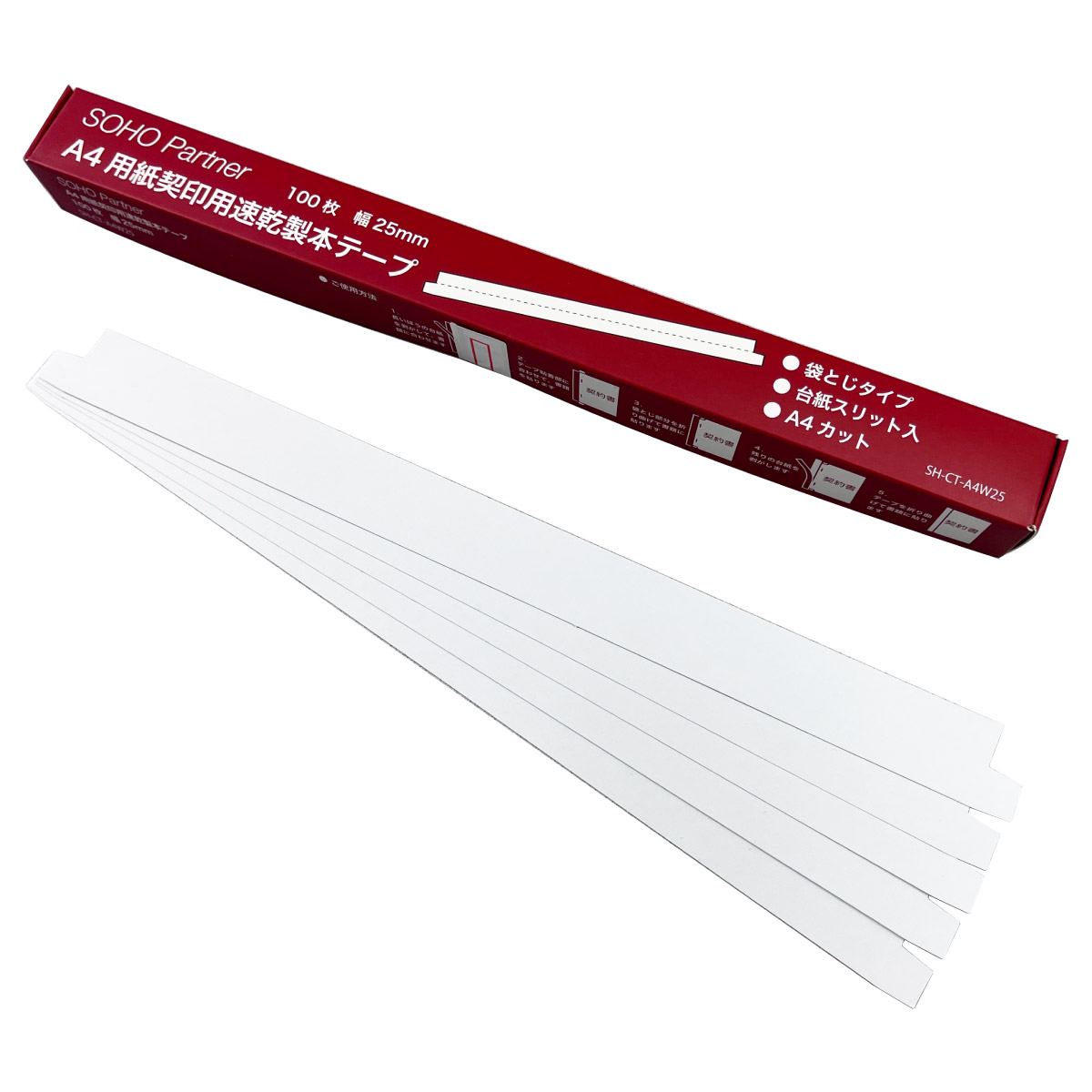 契約書 契印用 製本 テープ 100枚 白 幅 25mm 袋とじ A4 カット 台紙スリット 割印 対応 製本ラベル 業務用テープ:幅:25mm