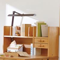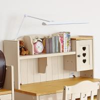 目に優しいLED学習デスクライト。お手持ちの学習机や書斎机、平机にクランプで後付けできるLED卓上照明。コンパクトで取り回ししやすく、片側にラックがついたユニットタイプのデスクやリビング学習にもおすすめです。