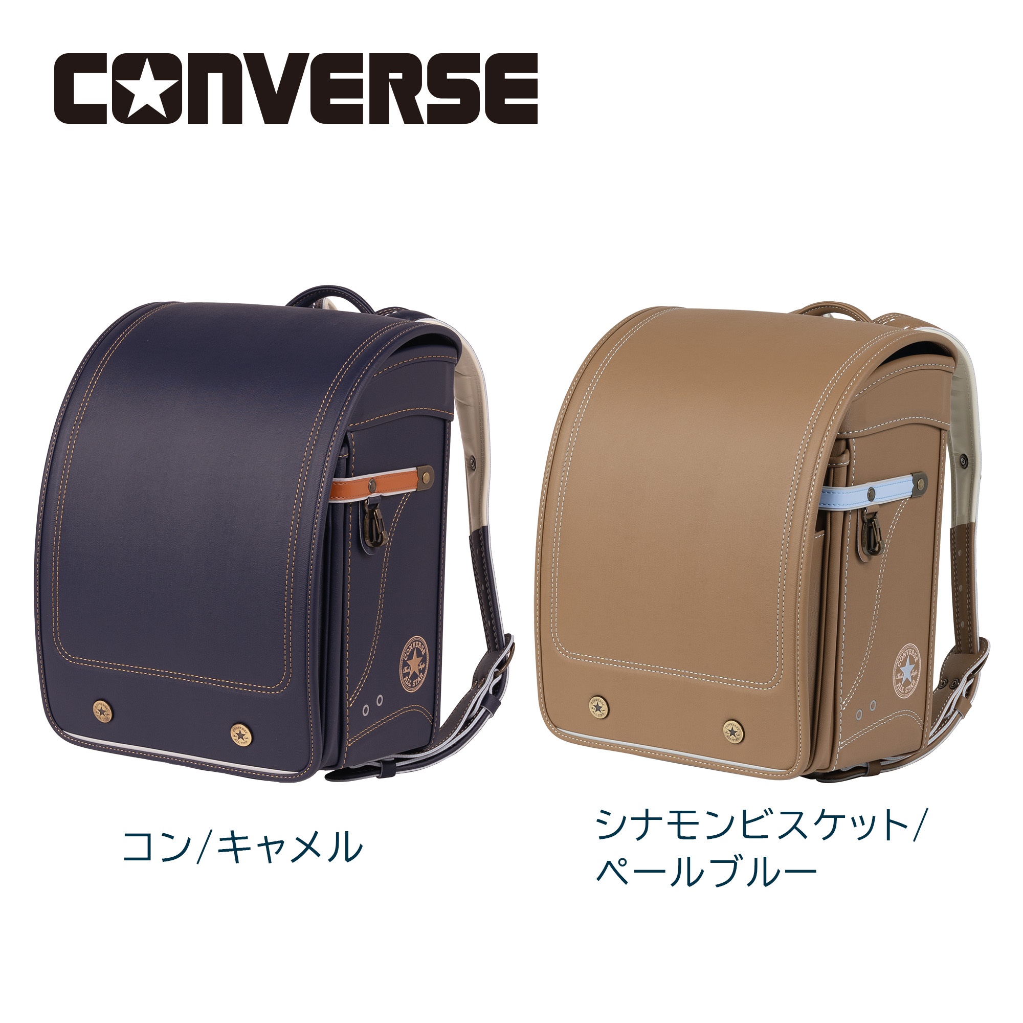 スニーカーで大人気の「CONVERSE」による2026年モデルのランドセル。コン/CA・シナモンビスケット/PBの2色展開。内側には薄マチ型ポケット付き(ポケット内部Dカン付き)。コンバース型ロゴの引き手や、サイドのロゴがかっこいいデザインのランドセルです。