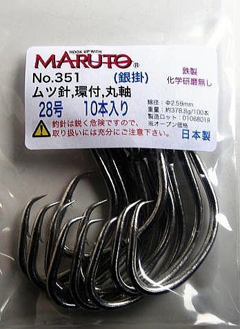 No.351 ムツ針 環付 28号 10本入り 強度 61kg