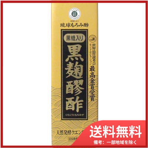 世界品質選考会モンドセレクション 最高金賞受賞!泡盛製造元ならではの沖縄特産・天然発酵クエン酸飲料!「黒麹醪酢 黒糖」は、沖縄産の焼酎泡盛もろみを使用した天然発酵クエン酸醸造酢。 泡盛のもととなるもろみには、黒麹菌が生成するクエン酸が大量に含 まれています。飲みやすさも抜群。お酢を飲む習慣のなかった方やご家族でお飲みになる方に は、ミネラル豊富で飲みやすい黒糖入りタイプがおすすめです。