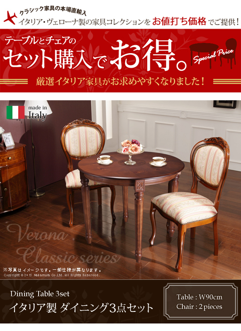 応接セット オフィス 店舗 2人用 アンティーク クラシック ダイニング3点セット テーブル幅90cm チェア2脚