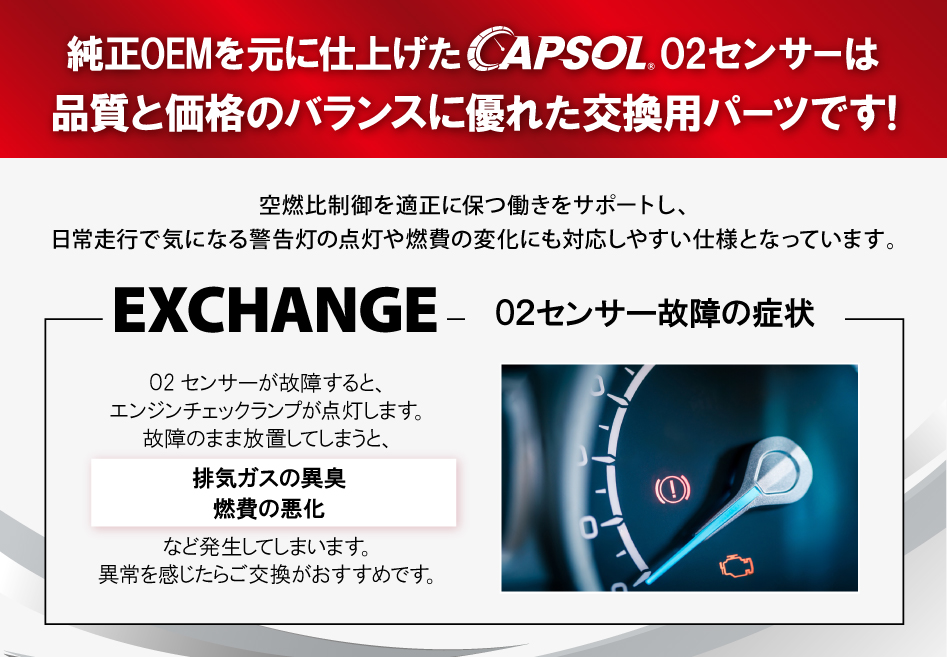 ●商品説明【CAPSOL O2センサー】純正OEMを元に仕上げた【CAPSOL】のO2センサーは、品質と価格のバランスに優れた交換用パーツです。