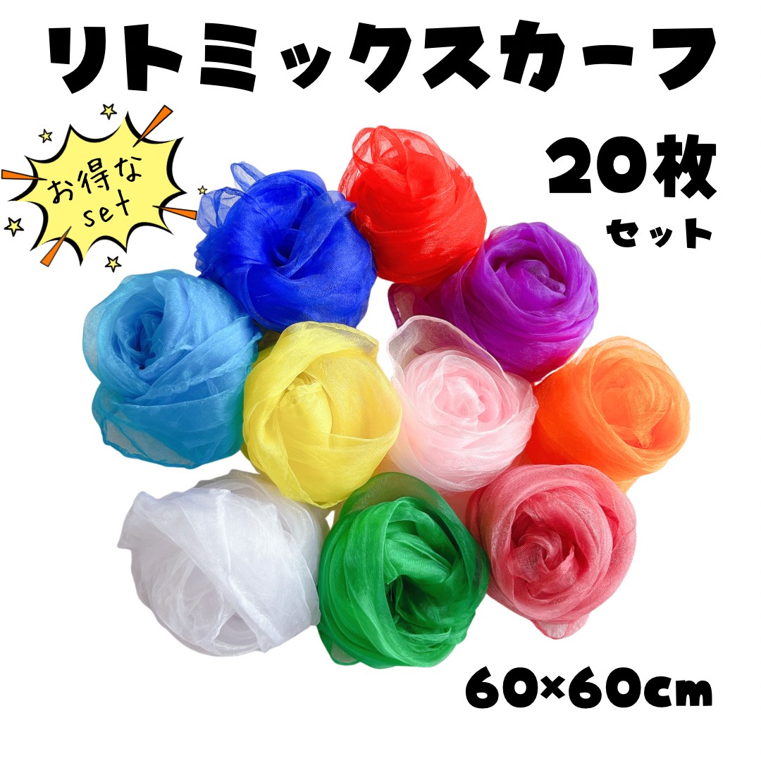 リトミックスカーフ シフォン 10色 20枚 セット モンテッソーリ 知育玩具 原色 大判 シフォンスカーフ ダンス 無限ティッシュ 赤ちゃん 幼児 道具 老人 リハビリ