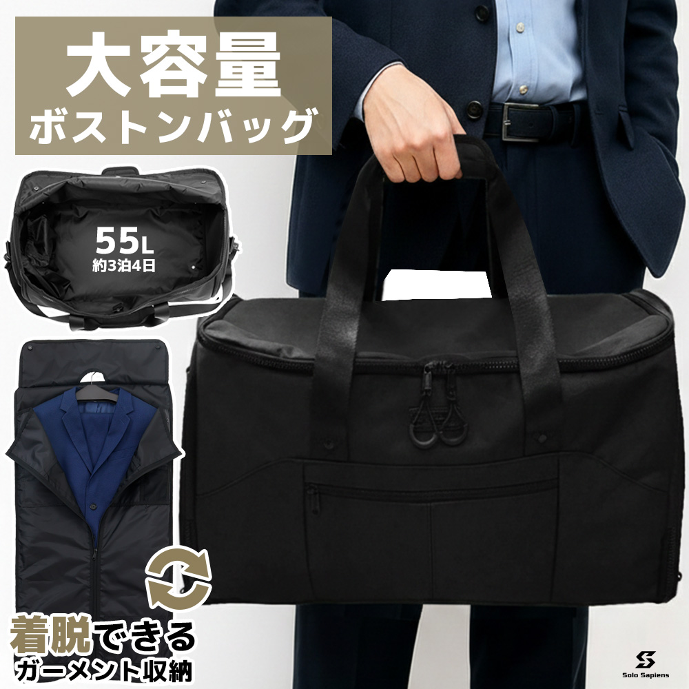 旅行バッグ ボストンバッグ ガーメントバッグ 大容量 旅行 靴が入る 靴収納 収納カバー スーツカバー 出張 ガーメントバック 父の日 ソロサピエンス