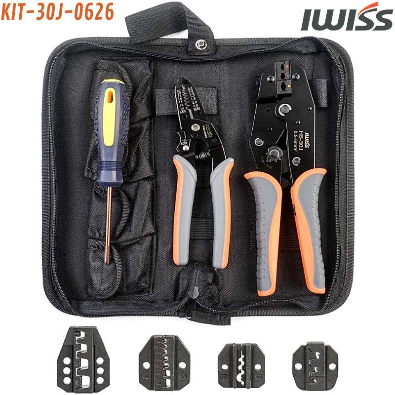 アイウィス IWISS マルチ圧着工具セット ダイス交換式 オープンバレル 裸端子 絶縁端子 棒端子用 圧着工具 圧着ペンチ 圧着端子 工具キット KIT-30J-0626