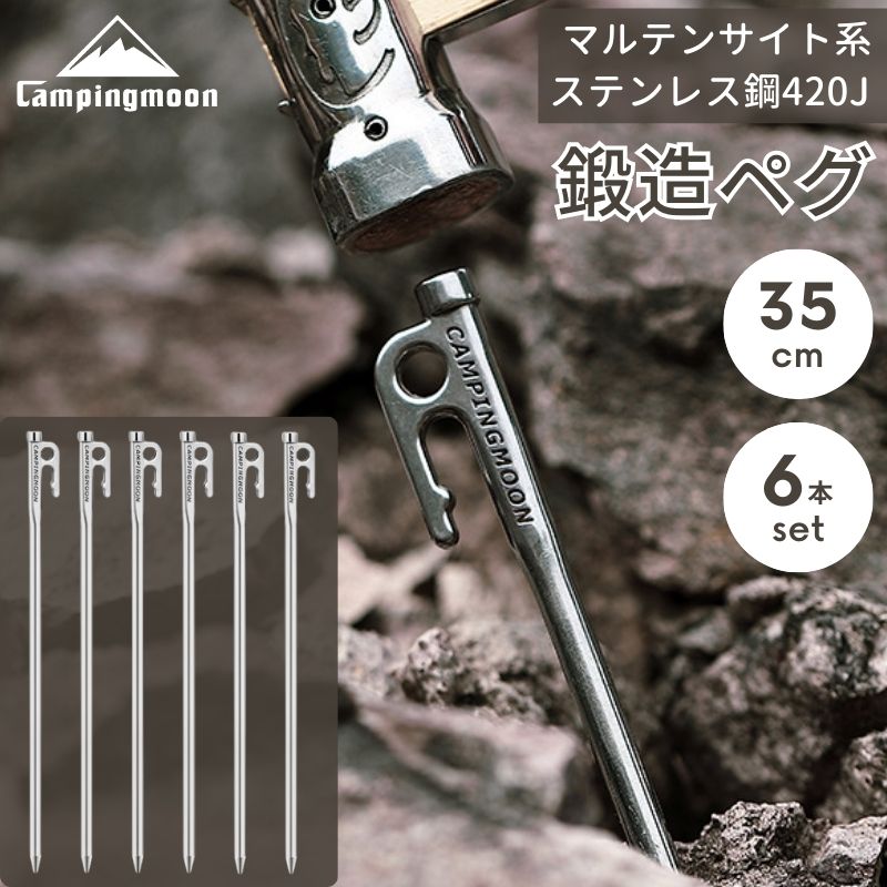 鍛造ペグであるゆえ、熱に強いことから焚火調理などをするさいのゴトクにも使用可能。熱量が非常に大きいとされる焚火の温度は250℃〜450℃と言われていますが、鍛造ペグK-Pegで使われているマルテンサイトステンレスは、500℃あってもさほど変形しません。