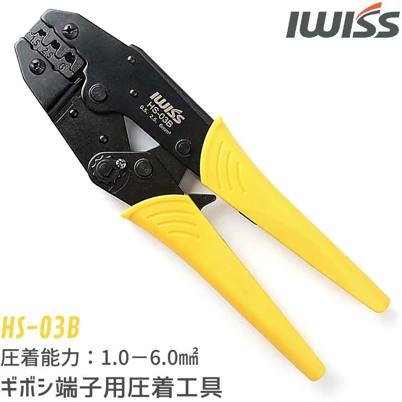 アイウィス(IWISS) ラチェット式 ギボシ端子 同時圧着ペンチ 1.5-6.0mm2対応 HS-03B 圧着工具 圧着ペンチ おすすめ メール便