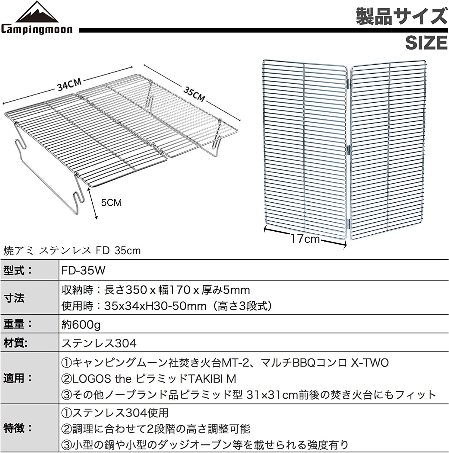 焼き網は小型ダッチオーブンや鋳鉄製グリルプレートも載せられる強度を持った焼アミです。