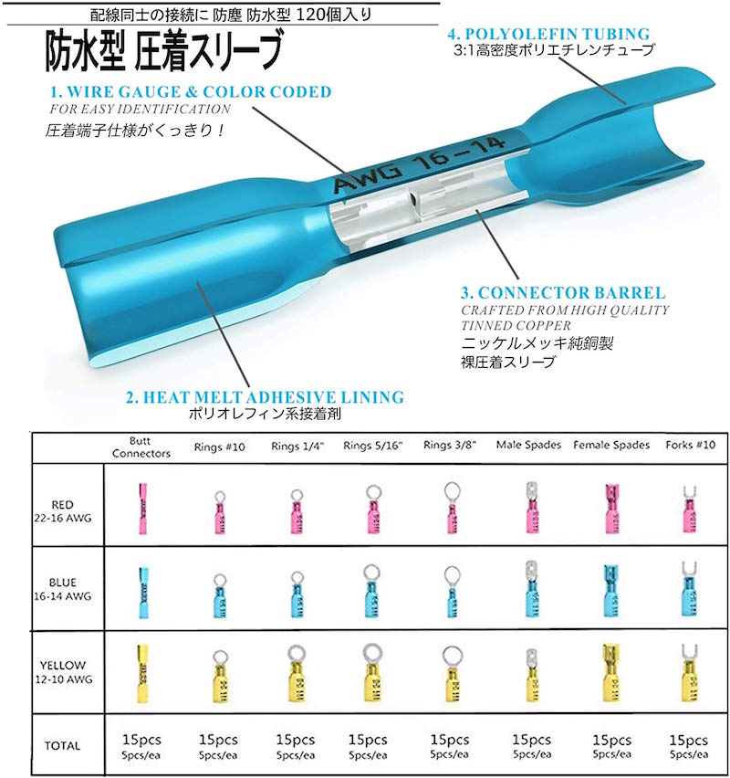 防水型圧着スリーブ 純銅製 防水型 圧着スリーブ 防水形圧着端子 熱 収縮 熱収縮タイプ 絶縁スリーブ 圧着接続端子 端子 端子セット お得 おすすめ 人気