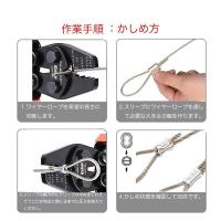 ・被覆ワイヤーロープは、被覆を取り去ってから圧着してください。被覆の上から圧着すると荷重に耐えられず抜けます。