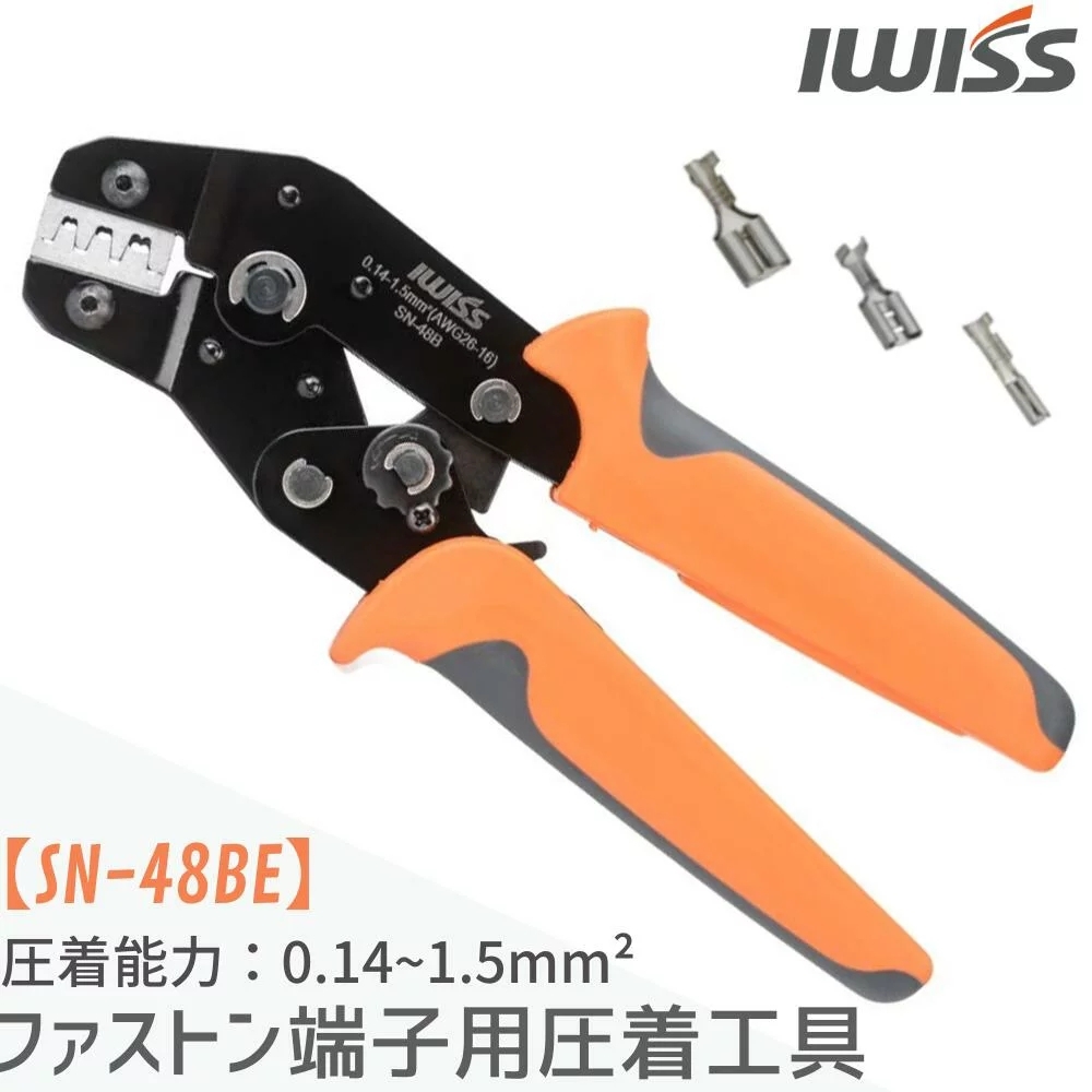 アイウィス(IWISS) 同時圧着ペンチ ラチェット式 オープンバレル ファストン端子 EDMカット品 0.14-1.5mm2中型端子対応 SN-48BE