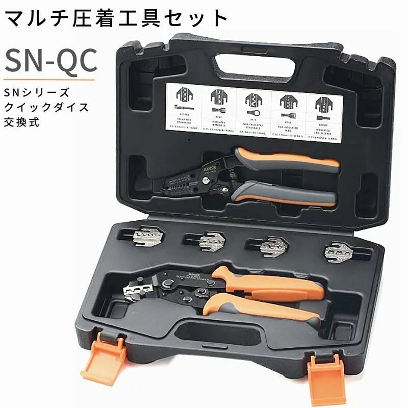 圧着工具 ダイス 工具セット 圧着ペンチ ダイス交換式 ミニ圧着工具 モジュラープラグ 絶縁端子 裸端子 フェルール端子 オープンバレル 平形端子 ソーラー SN-QC