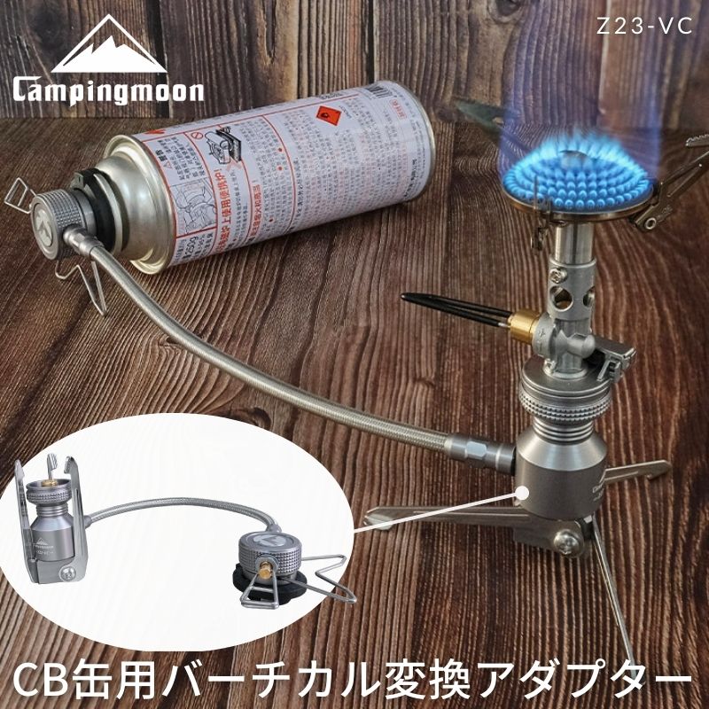 付属のOD缶一体型バーナーやガスランタンを、ホームセンターなどに売っているカセットコンロ用のカセットボンベに繋げることができるアダプター。