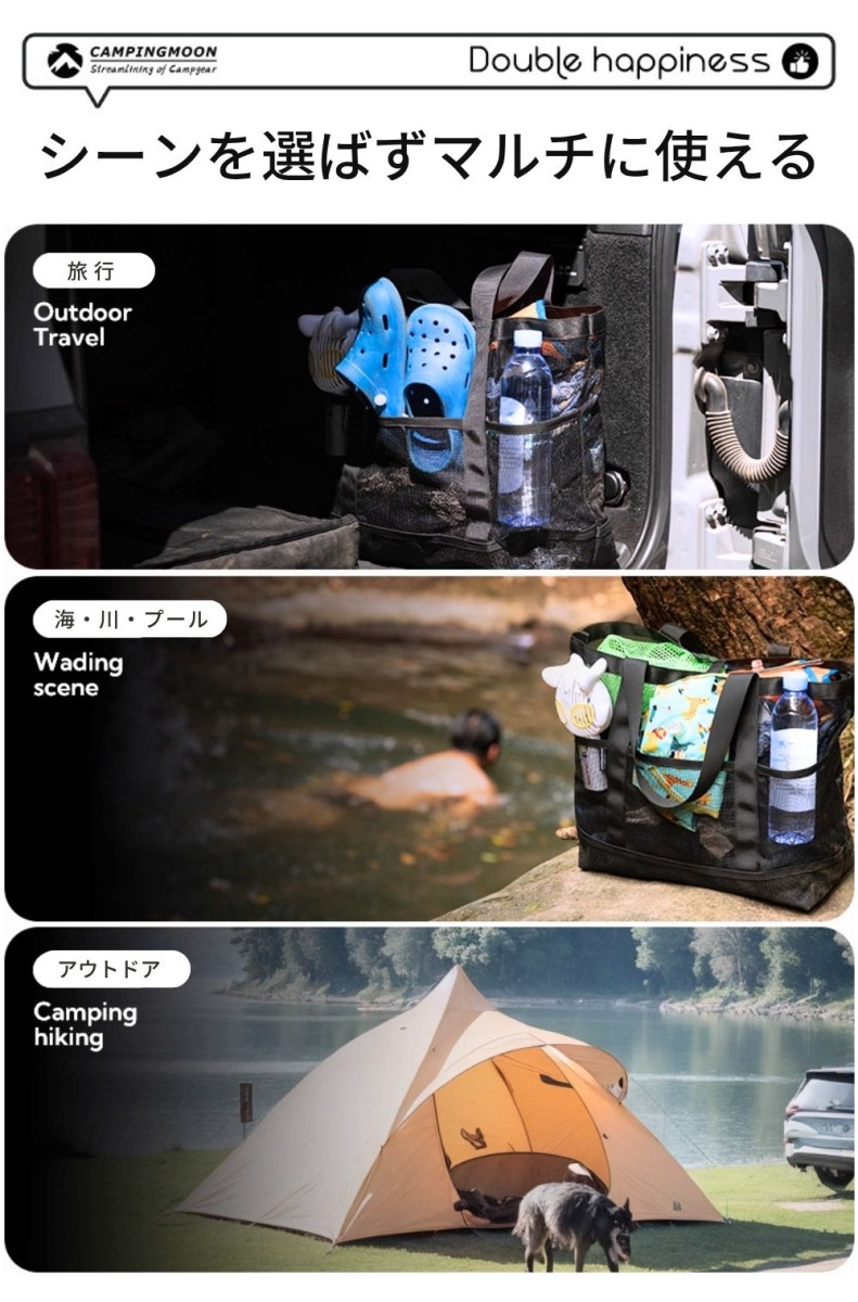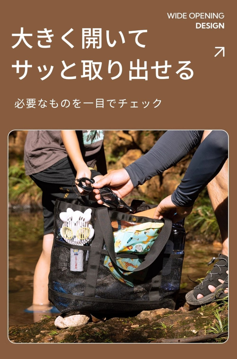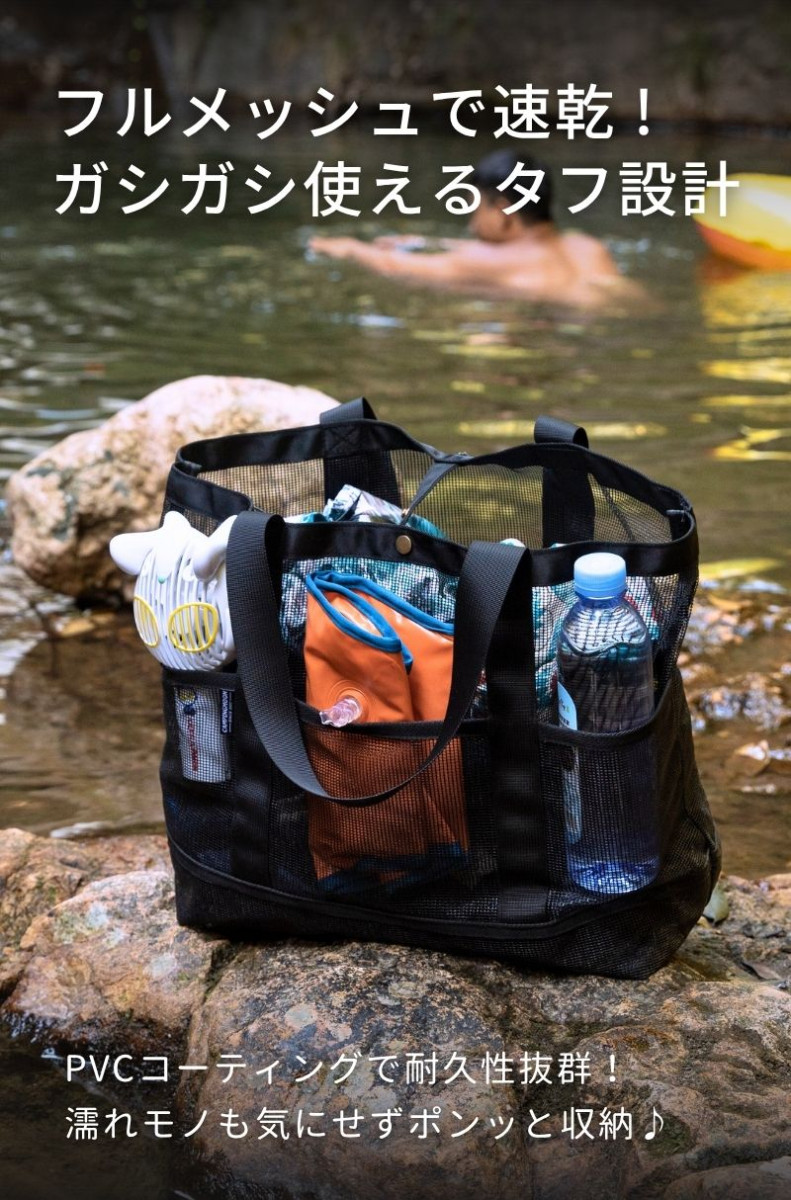 水辺・レジャー ・砂場、海水浴、プール、温泉など濡れたものの収納 ・通気性があるので水切れしやすく衛生的