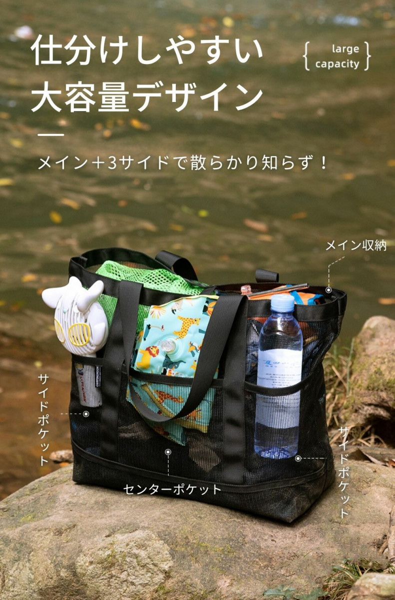家庭内・整理収納など多用途に! ・玩具入れや雑貨整理など、室内収納として ・砂場、海水浴、プール、温泉、ダイビング、お買い物など幅広く活用可能 |