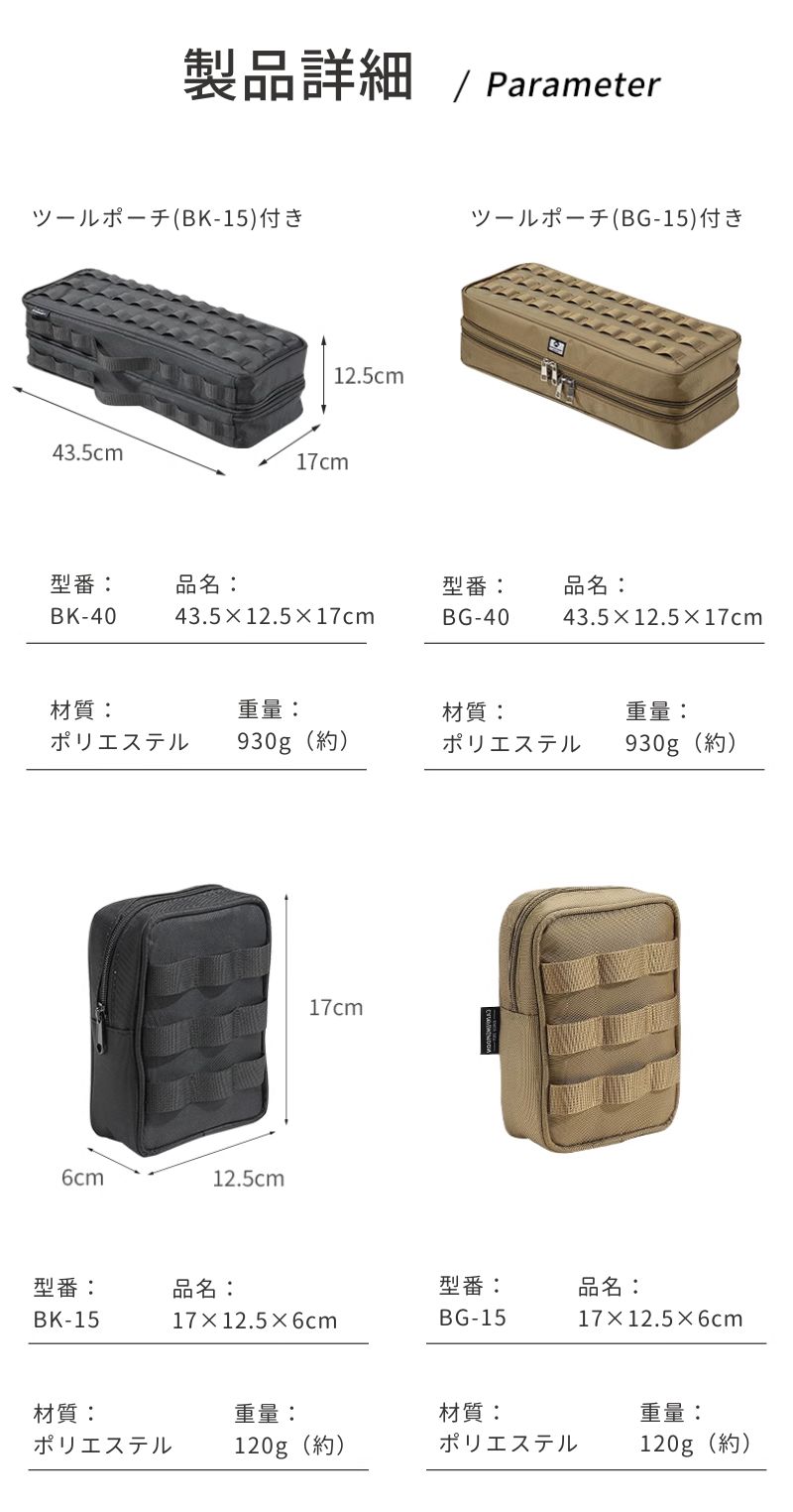 ツールポーチ:12.5×6×17cm(約)/(約)120g